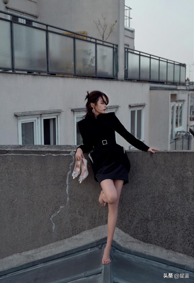 最妙的是她的细节处理:发型是半扎的碎发,几缕刘海垂在脸侧,既能修饰颧骨又显得随性不刻意;耳饰选了带钻的长款款式,刚好垂到下颌线,悄悄优化了脸部比例;甚至连手拿包都选了同色系刺绣款,和整体风格呼应却不抢戏。